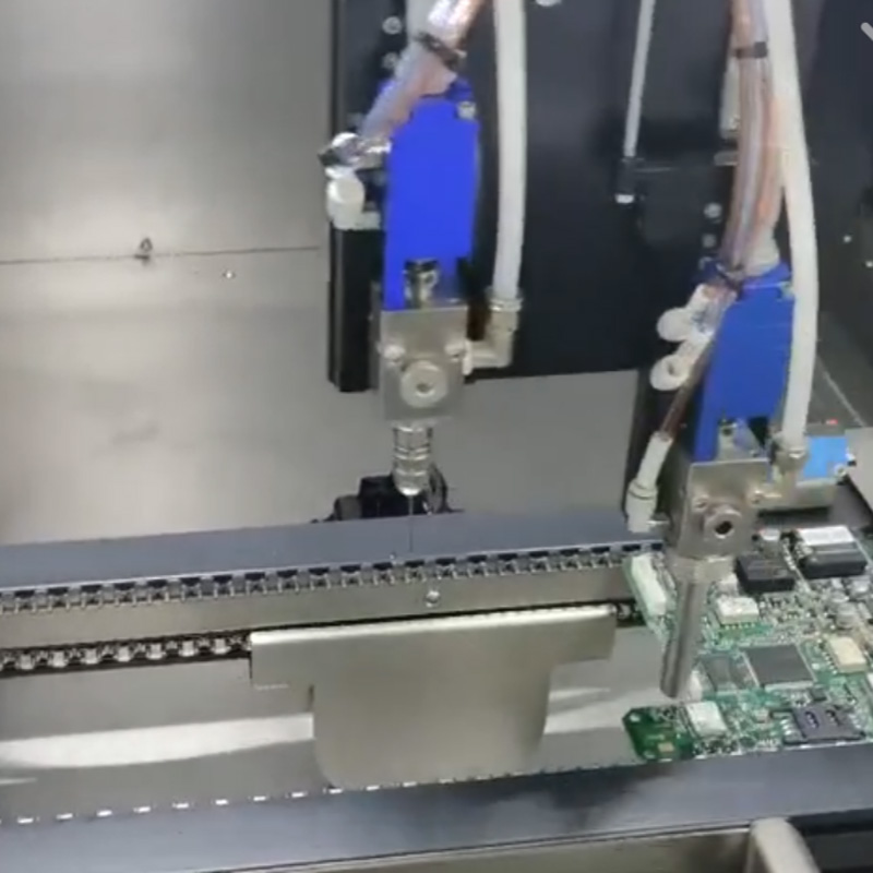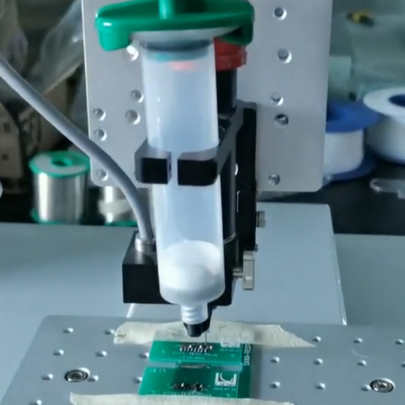 噴射閥點(diǎn)膠機(jī)全自動(dòng)噴涂線路板工藝實(shí)拍